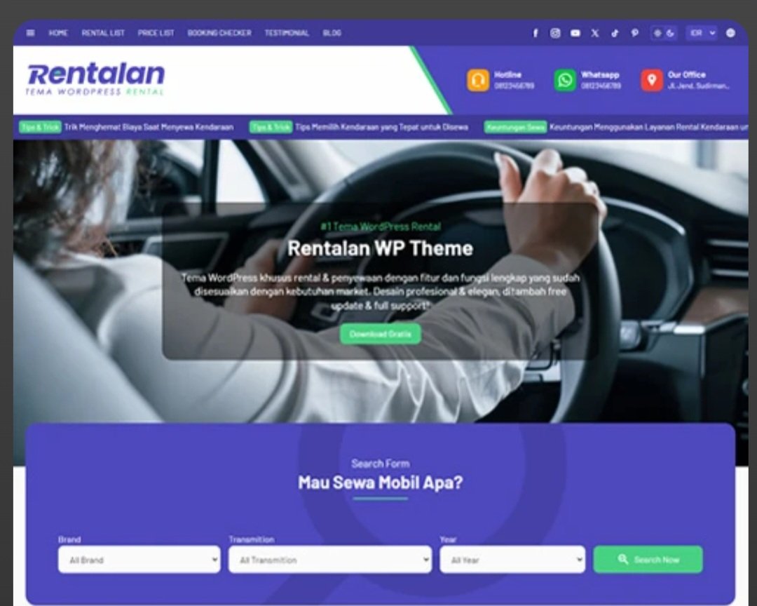 Rentalan adalah tema WordPress serbaguna yang dirancang untuk berbagai bisnis rental, mulai dari kendaraan, peralatan camping, alat berat, dan berbagai jenis rental lainnya.